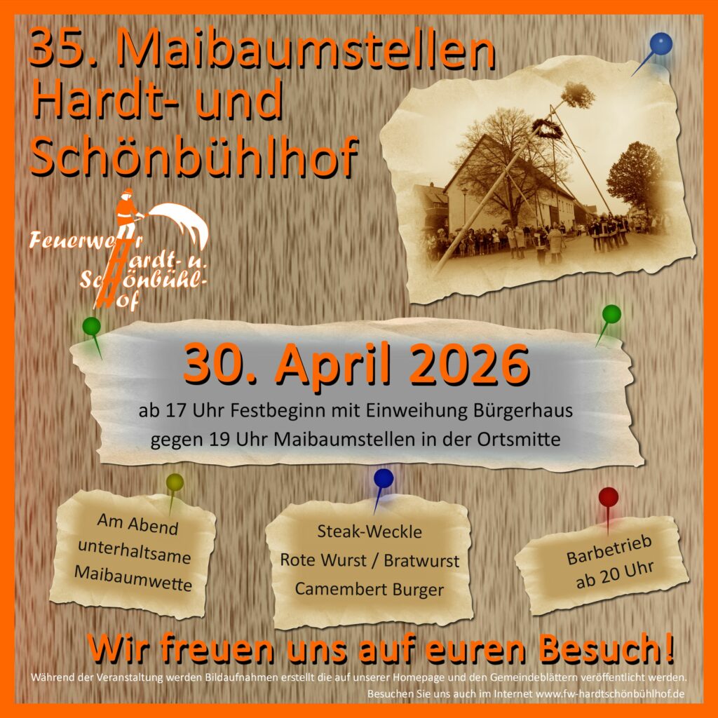 Am 30.04. findet auf dem Hardt- und Schönbühlhof wieder das traditionelle Maibaumstellen statt!