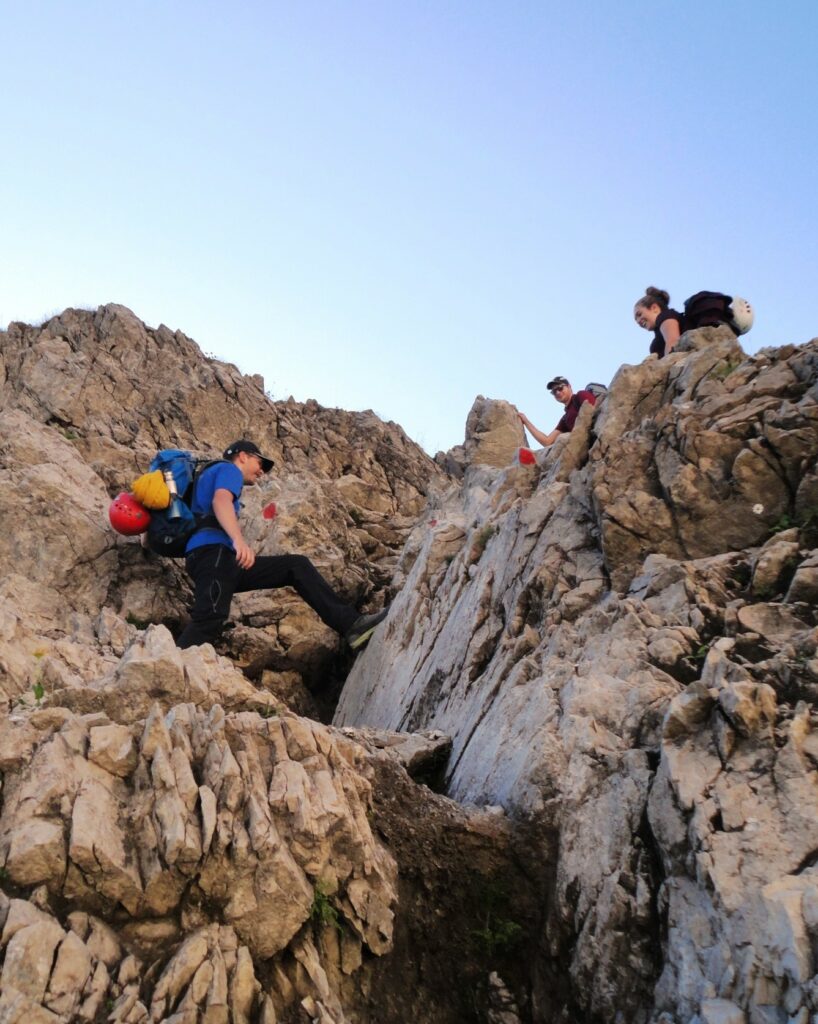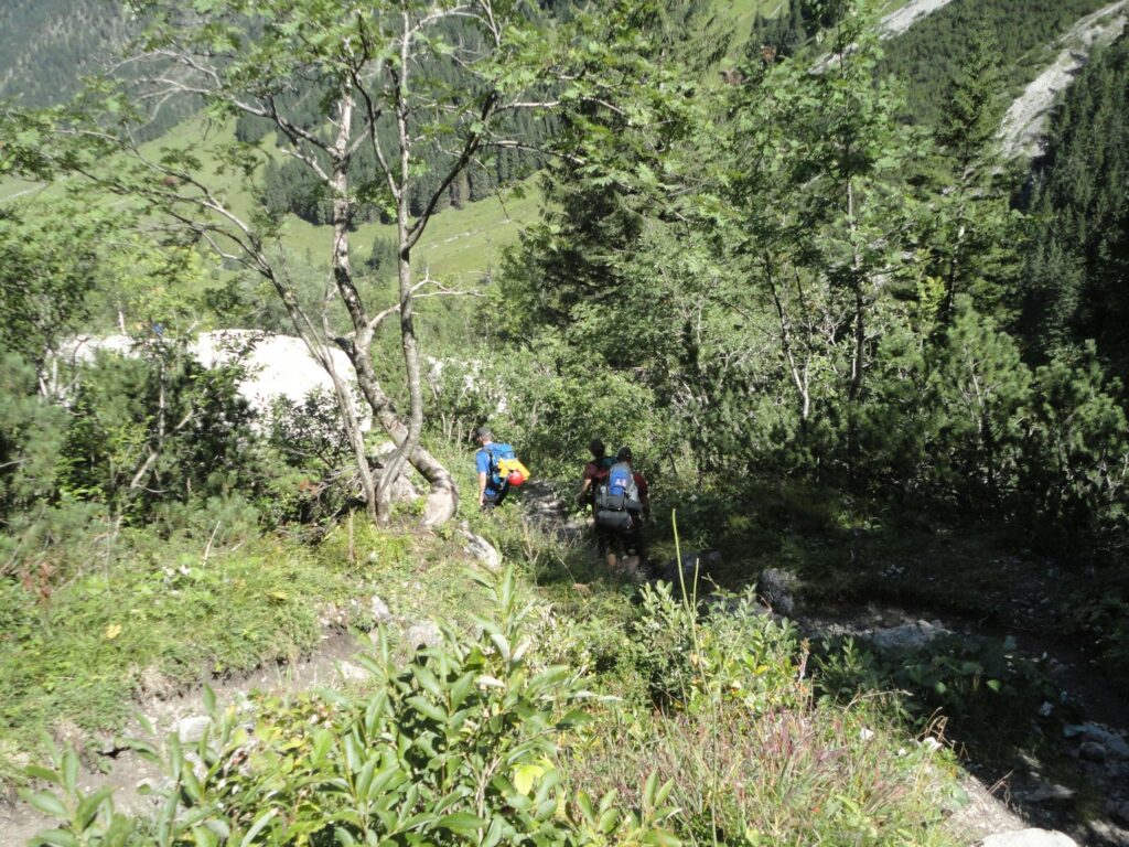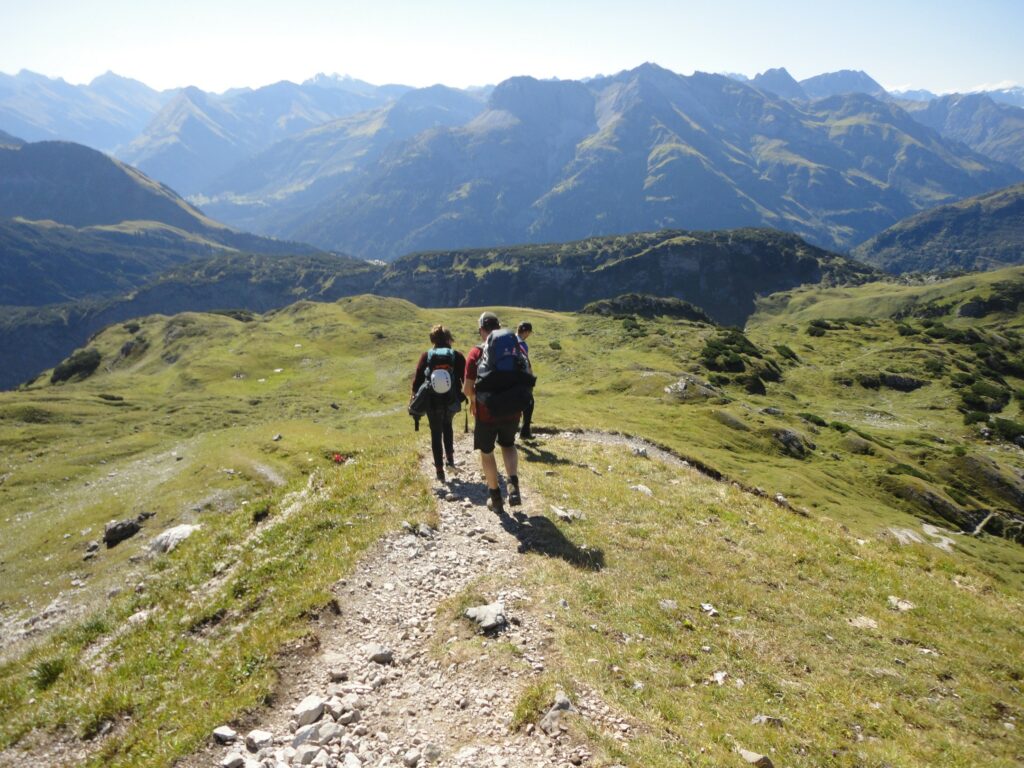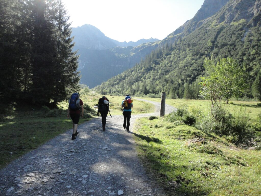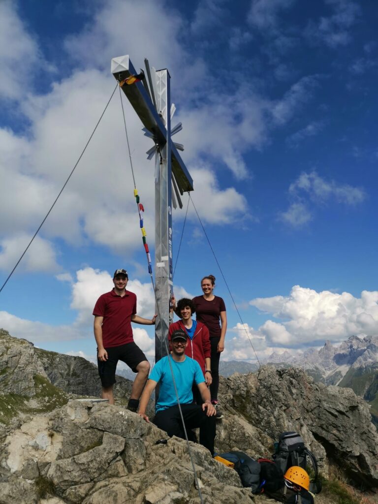 Dort angekommen wurden wir von bestem Wetter und angenehmen Temperaturen begrüßt. Der Aufstieg von etwa 1000 Höhenmetern führte uns durchs Wildental auf die Mindelheimer Hütte. Nach einem kleinen Gipfel-Umweg über das Kemptner Köpfle erreichten wir die Hütte bei strahlendem Sonnenschein am Spätnachmittag.